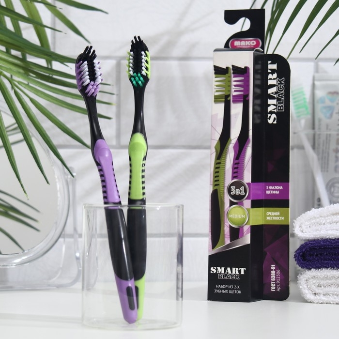 Зубная щётка «Смарт» Black средней жесткости, фиолетовый + зеленый, 2 шт.