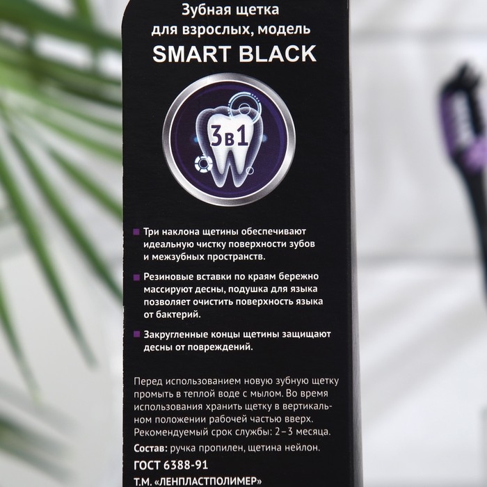 Зубная щётка «Смарт» Black средней жесткостиэффективно удалит налёт и очистит полость рта, не травмируя её при этом. Специальные щетинки подстраиваются под контуры зубов, проникают даже в труднодоступные места.