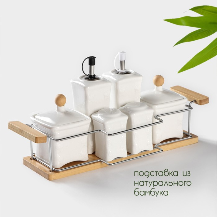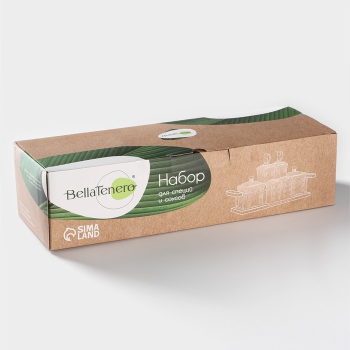 Банки для хранения специй и соусов BellaTenero, 6 предметов: солонка 100 мл, банка 200 мл, соусник 200 мл, фарфоровые, цвет белый