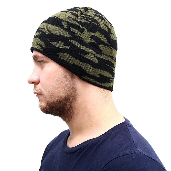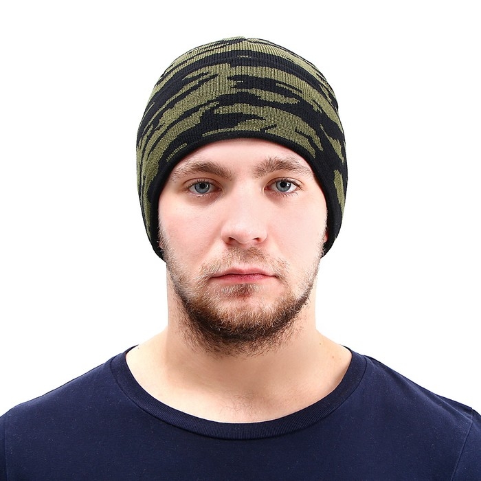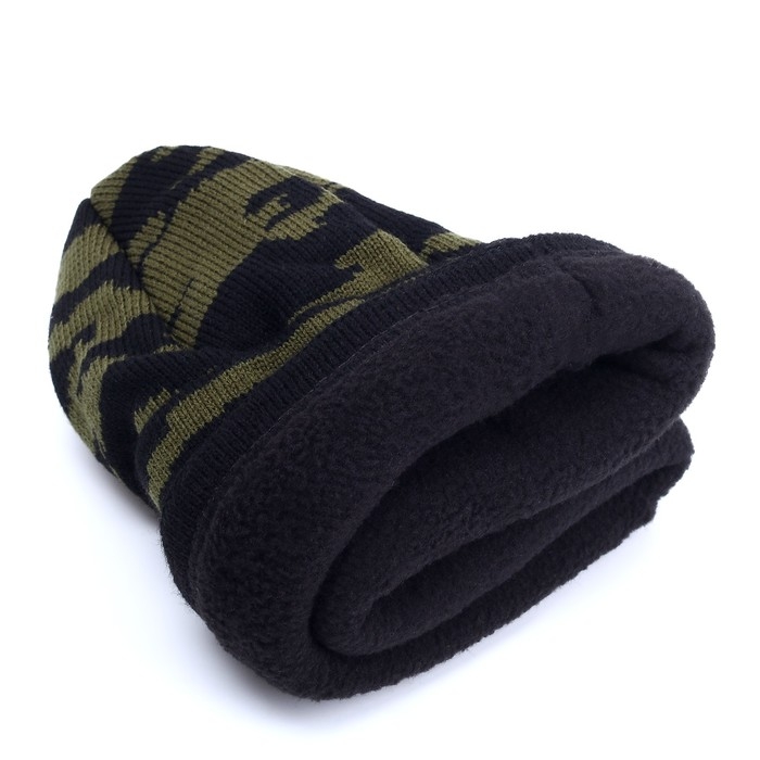 Шапка трикотажная, на флисе, волна, камуфляж