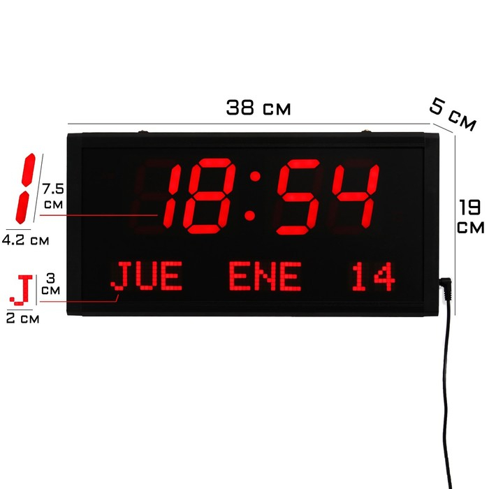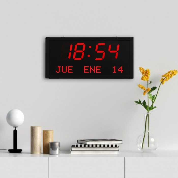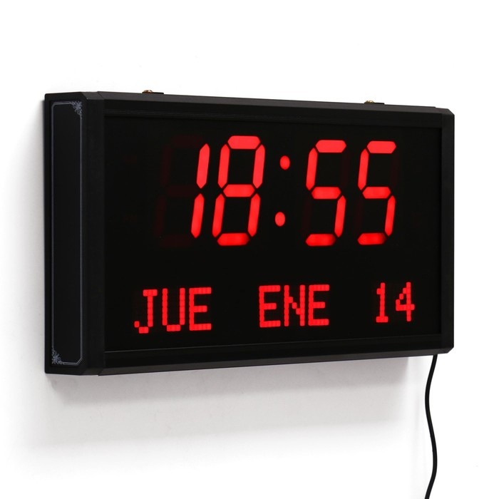 Часы электронные настенные "Соломон", с будильником, 38 х 19 х 5 см, красные цифры