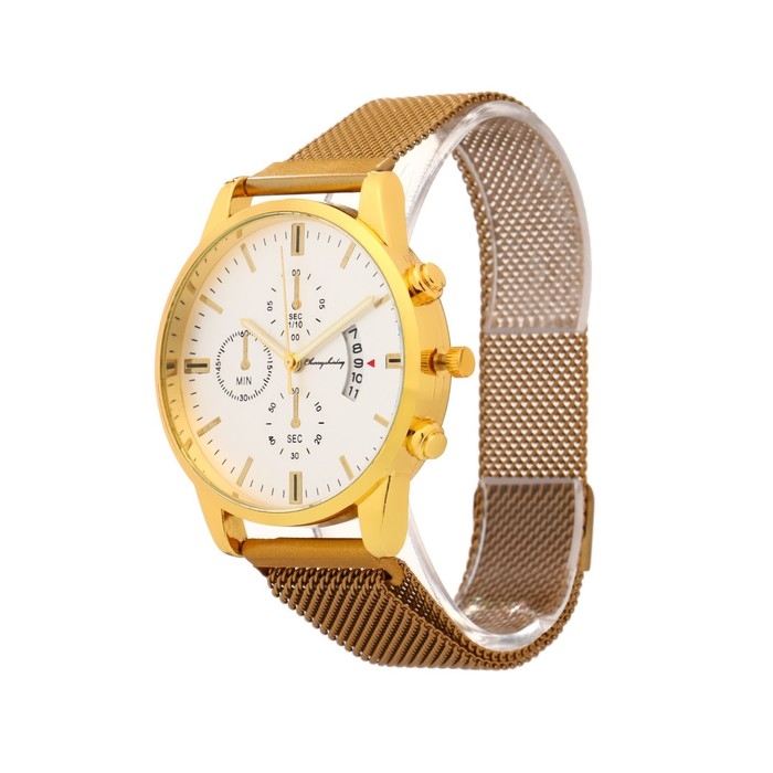Часы наручные мужские "Эдди", d-4 см, длина ремешка 28 см, золото