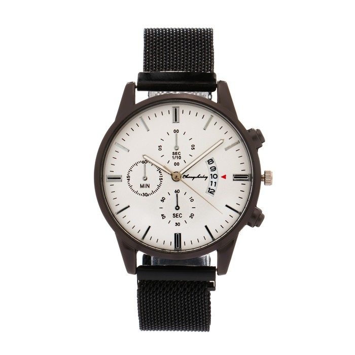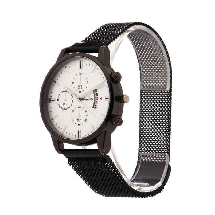Часы наручные мужские "Эдди", d-4 см, длина ремешка 28 см, черные