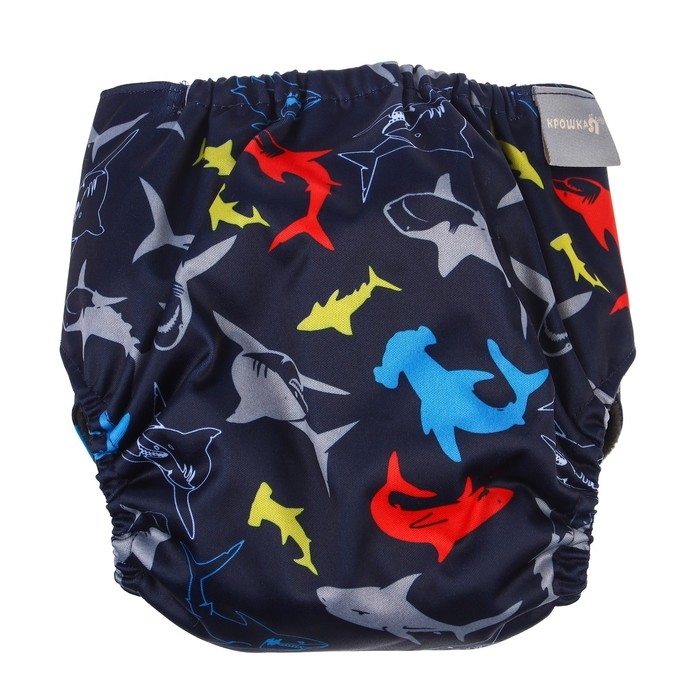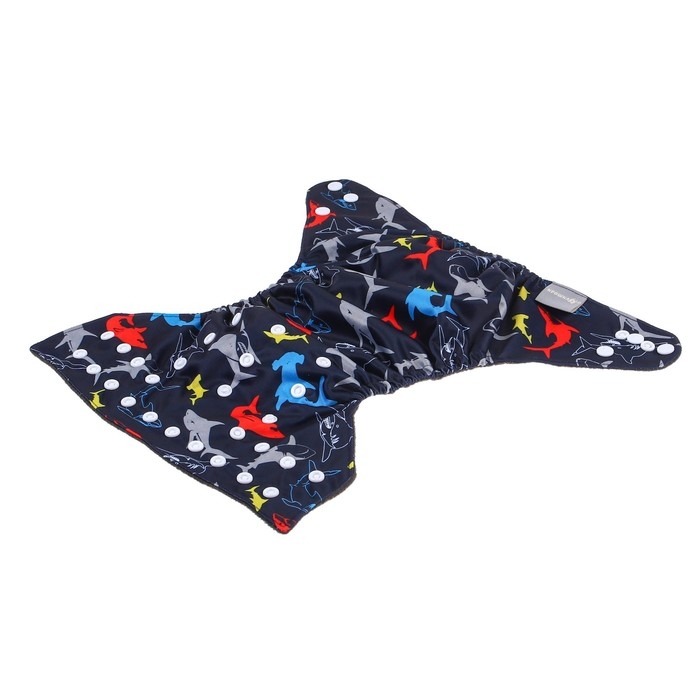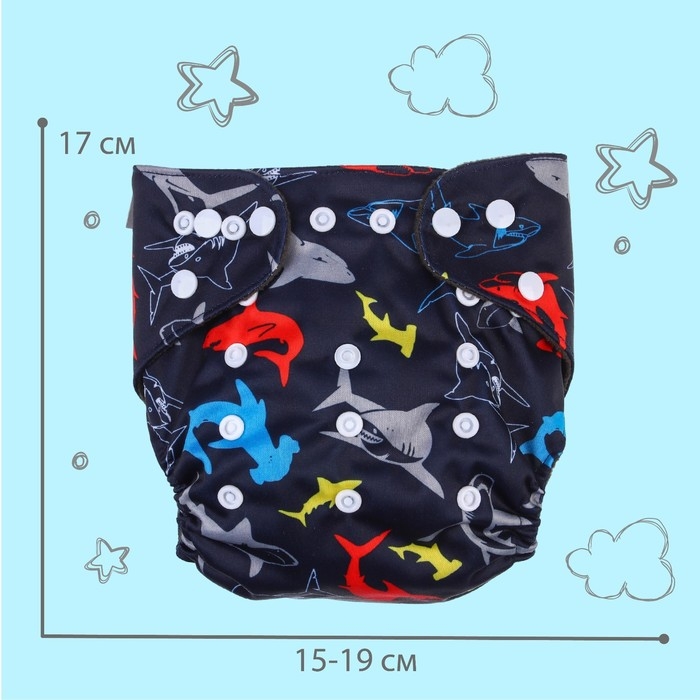 Многоразовый подгузник «Акулы», 3-15 кг, угольно-бамбуковая ткань, цвет черный, Крошка Я