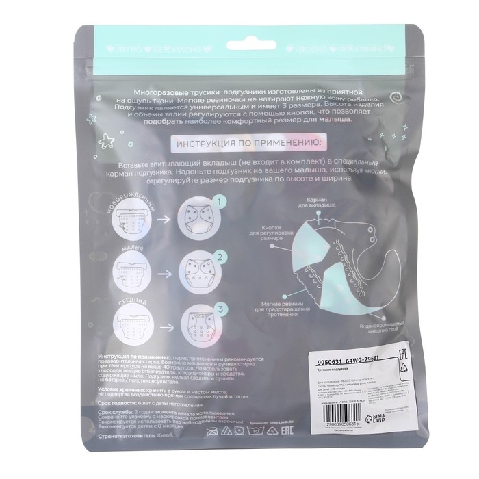 Трусики-подгузник, многоразовый, с вкладышем «Бабочки», Крошка Я