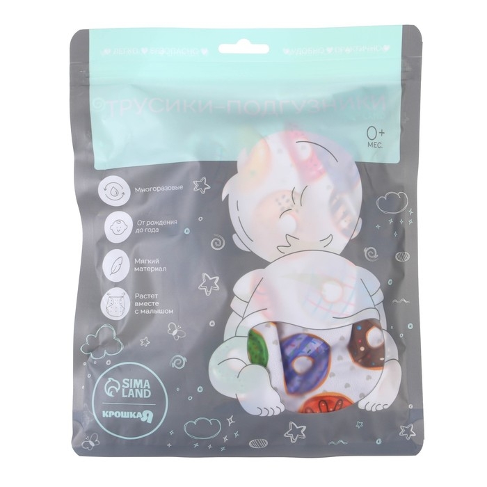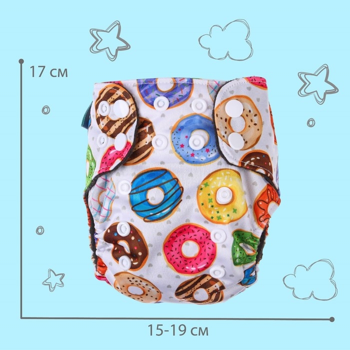 Многоразовый подгузник «Пончики», 3-8 кг, угольно-бамбуковая ткань, Крошка Я