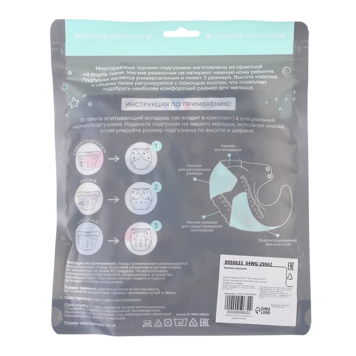 • Размер подгузника универсальный, подходит для детей от 3 до 15 кг, от рождения до 3 лет;
