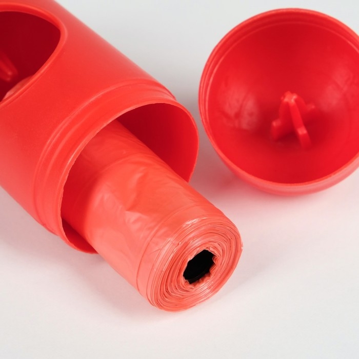 Контейнер с пакетами для уборки за собаками (рулон 15 пакетов 29х21 см), красный