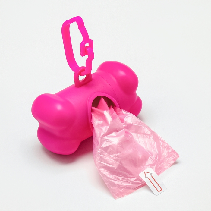 Контейнер-косточка с мешками для уборки (рулон 15 пакетов 29х21 см), розовый