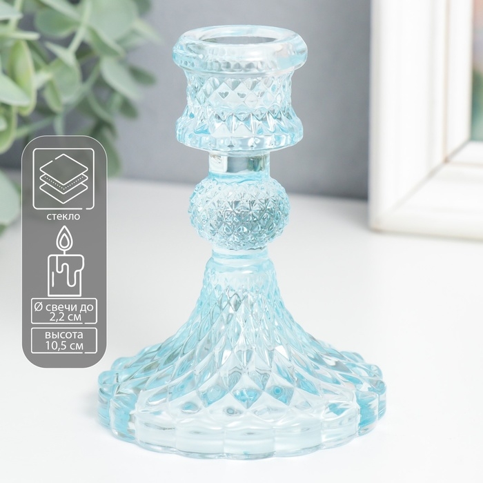 Подсвечник стекло на 1 свечу "Женева" d-2,2 см голубой 10,5х7,7х7,7 см