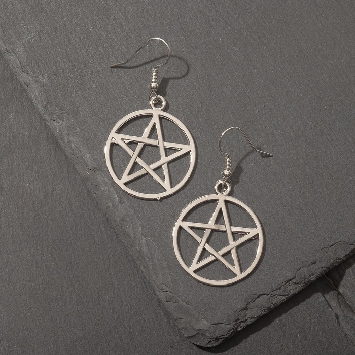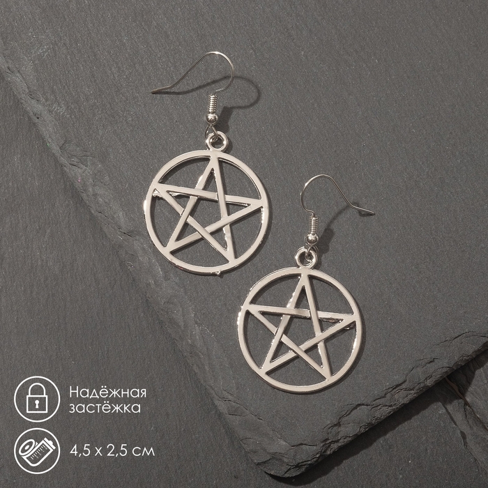 Серьги металл «Пентаграмма» перевёрнутая, цвет серебро
