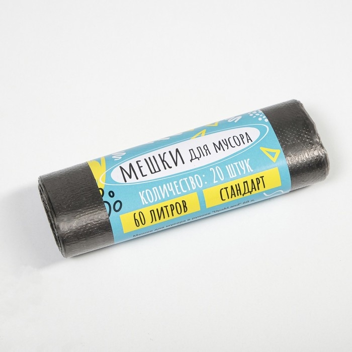 Мешки для мусора в рулоне "UPAK LAND" 60 л, черные, ПНД, 9 мкм, 55 х 70 см. 20 шт.