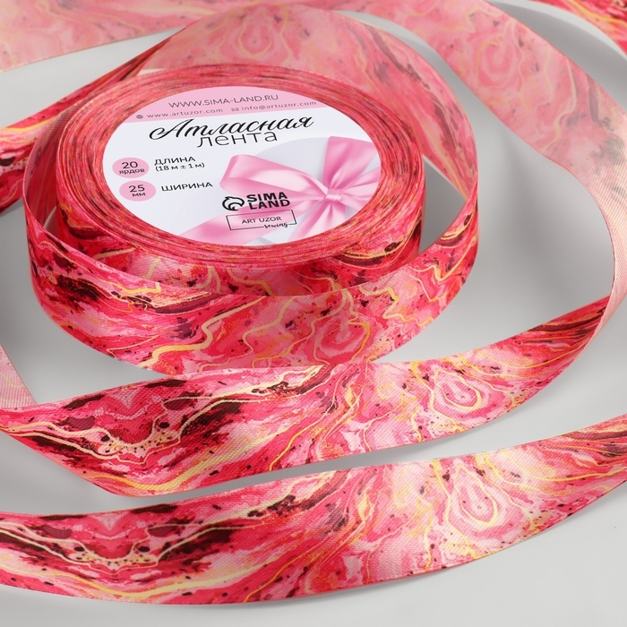 Лента атласная «Мрамор», 25 мм × 18 ± 1 м, цвет розовый