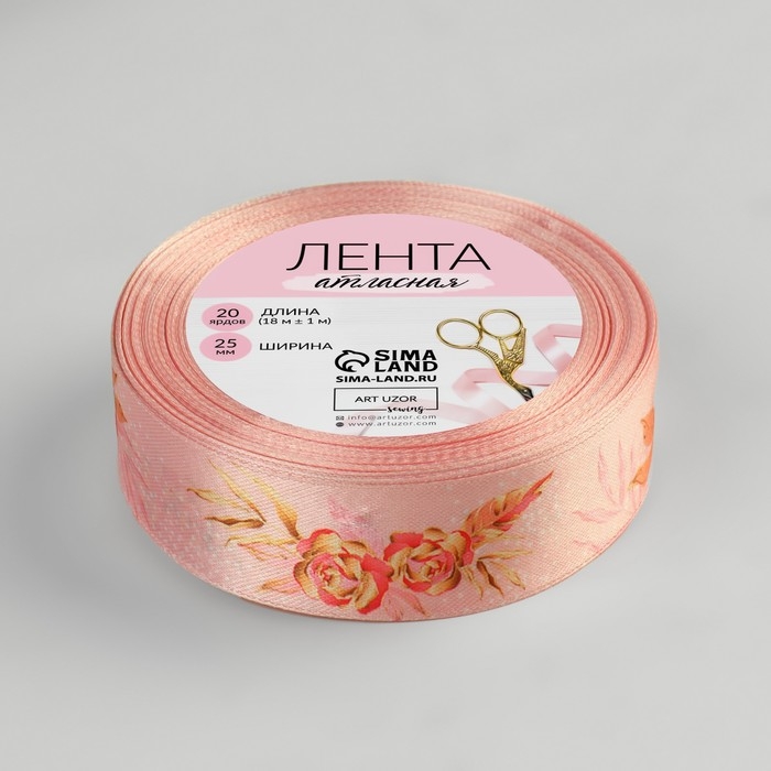Лента атласная «Розы», 25 мм × 18 ± 1 м, цвет персиковый