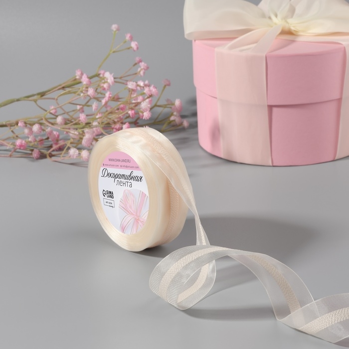 Лента декоративная, капроновая, 25 мм, 9 ± 0,5 м, цвет слоновая кость №008