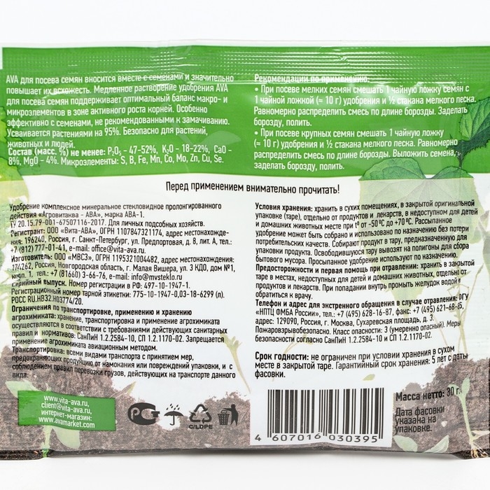 Медленное растворение поддерживает оптимальный баланс элементов в зоне роста корневой системы и способствует максимальному проращиванию семян.
