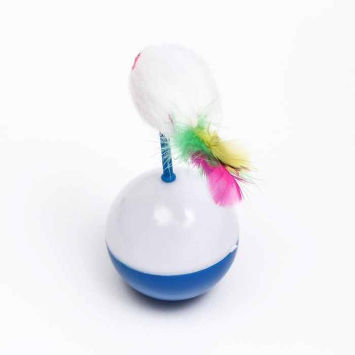 Мышь-неваляшка из искусственного меха на шаре, 11 х 6 см синий/белый