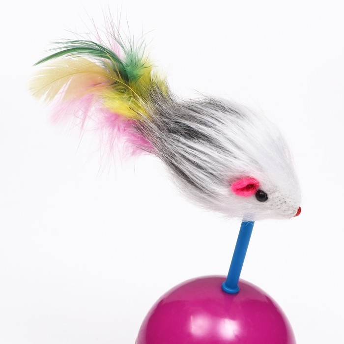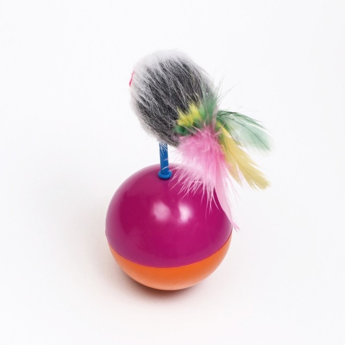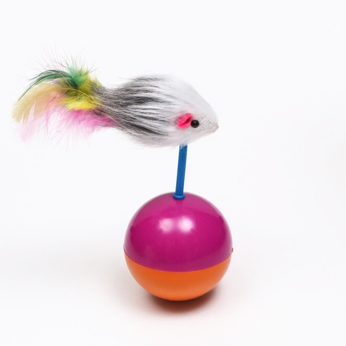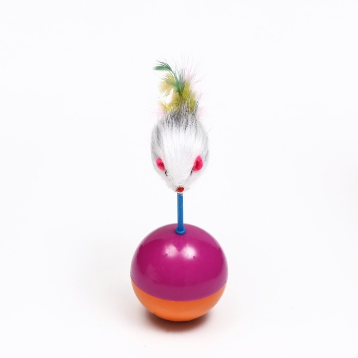 Мышь-неваляшка из искусственного меха на шаре, 11 х 6 см фиолетовый/оранжевый
