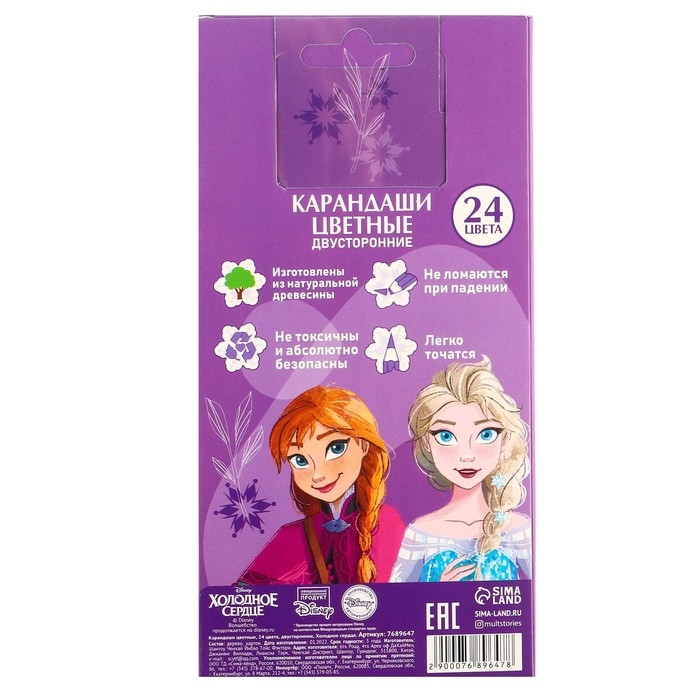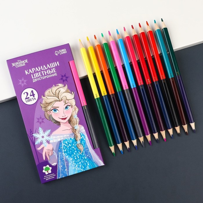 Цветные карандаши, 24 цвета, двусторонние, Холодное сердце