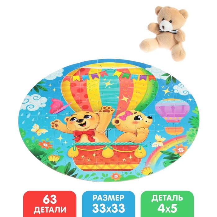 Подарочный набор пазлов с игрушкой «Весёлые мишки», 63 детали