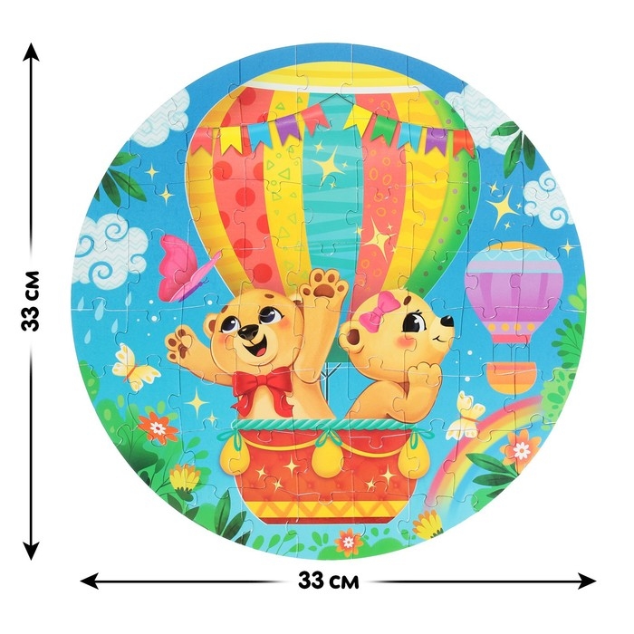 Набор «Весёлые мишки» станет эффектным подарком на любой праздник! В наборе вы найдёте круглый пазл из 63 деталей и мягкую игрушку.