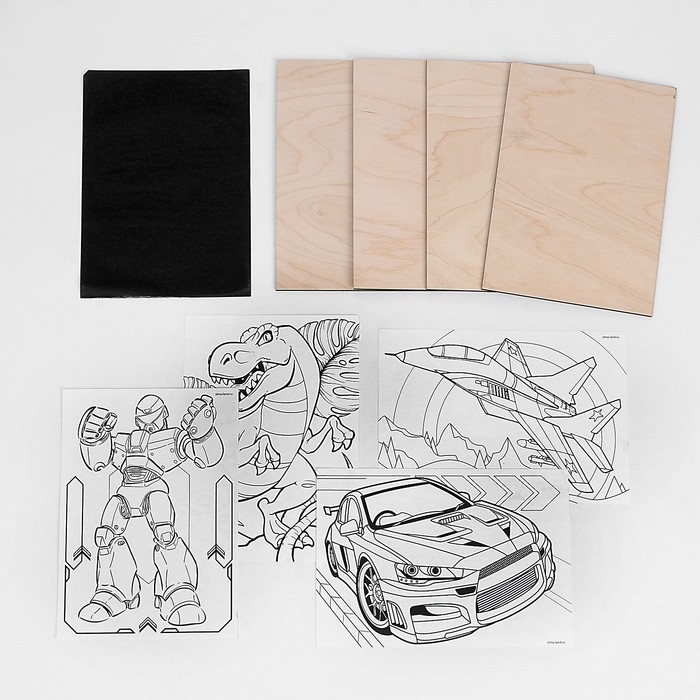 Доски для выжигания «Рисунки для мальчиков», с трафаретами