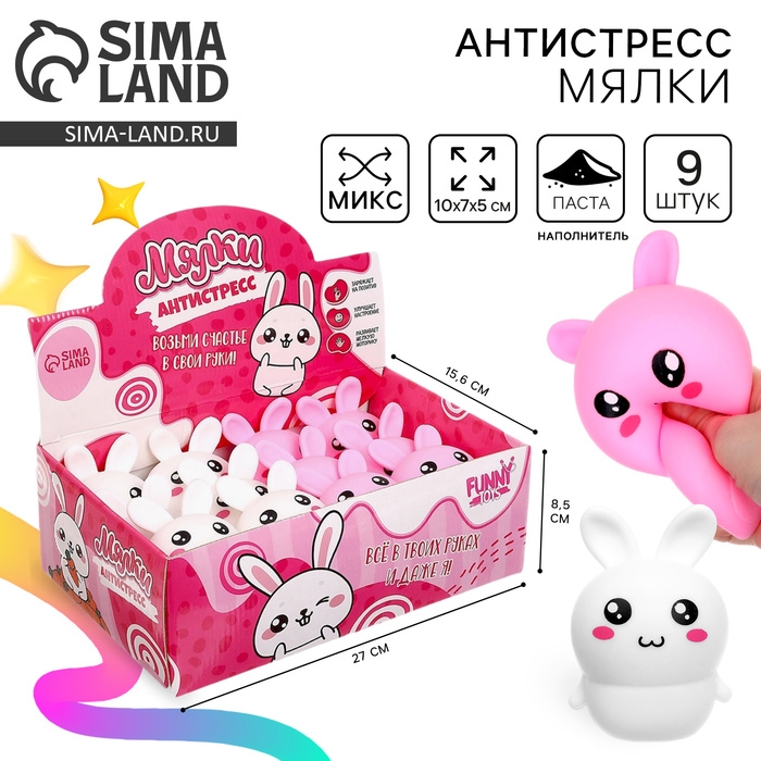 Антистресс сквиш мялка «Возьми зайку в свои руки», с пастой, цвета МИКС, в шоубоксе