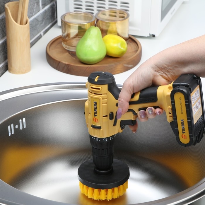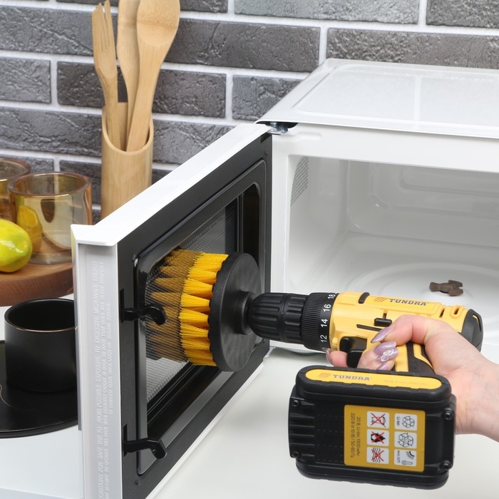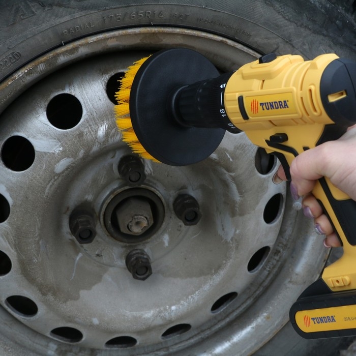 Насадка щётка ТУНДРА предназначена для совместного использования с шуруповёртом для отчистки поверхности от загрязнений.