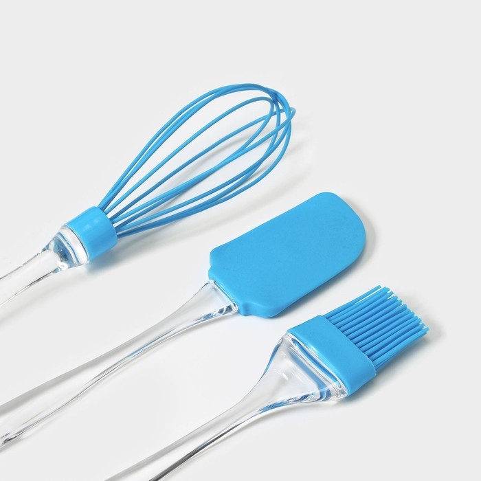 Набор для выпечки Доляна «Лёд. Макси», 3 предмета: лопатка 24 см, кисть 22 см, венчик 26 см, цвет голубой