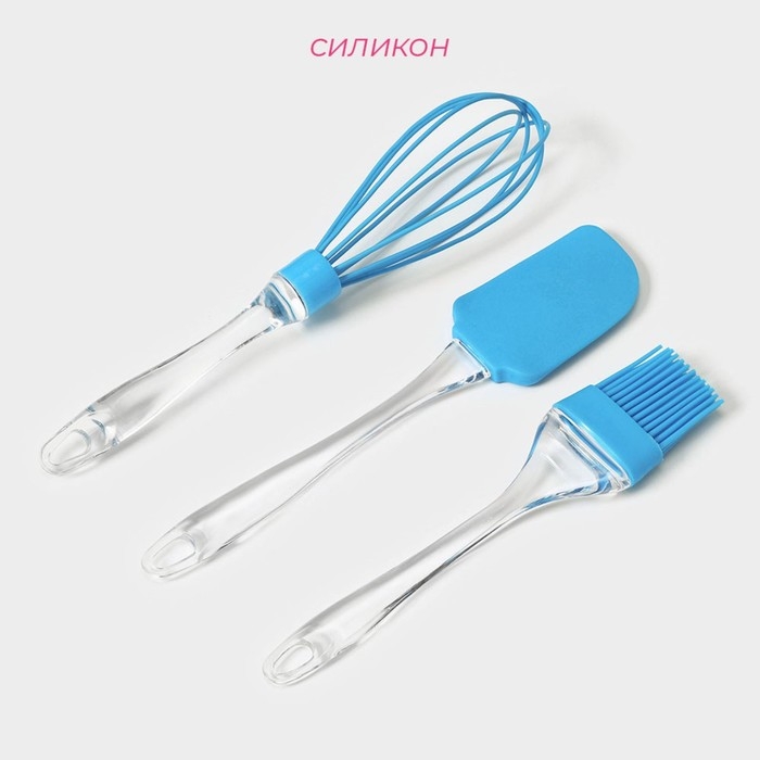 Набор для выпечки Доляна «Лёд», 3 предмета: лопатка 23,5 см, кисть 20,5 см, венчик 25 см, цвет МИКС