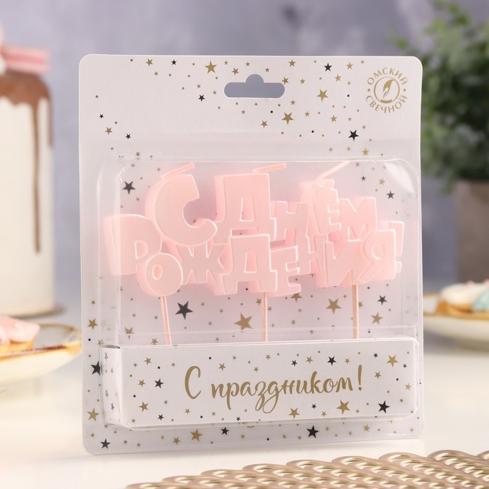 Набор свечей на шпажках "С Днем рождения", розовая, 5,3 см