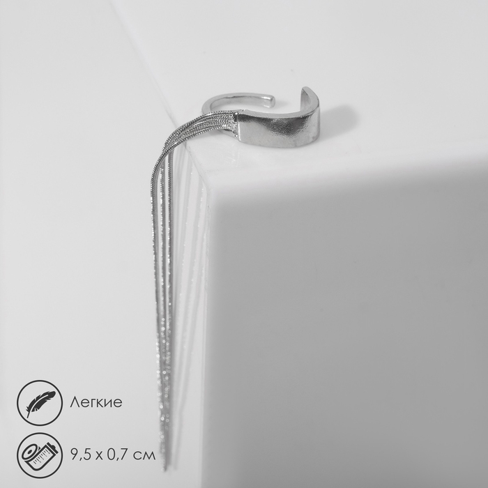 Моносерьга «Водопад» дуга, цвет серебро, 9,5 см