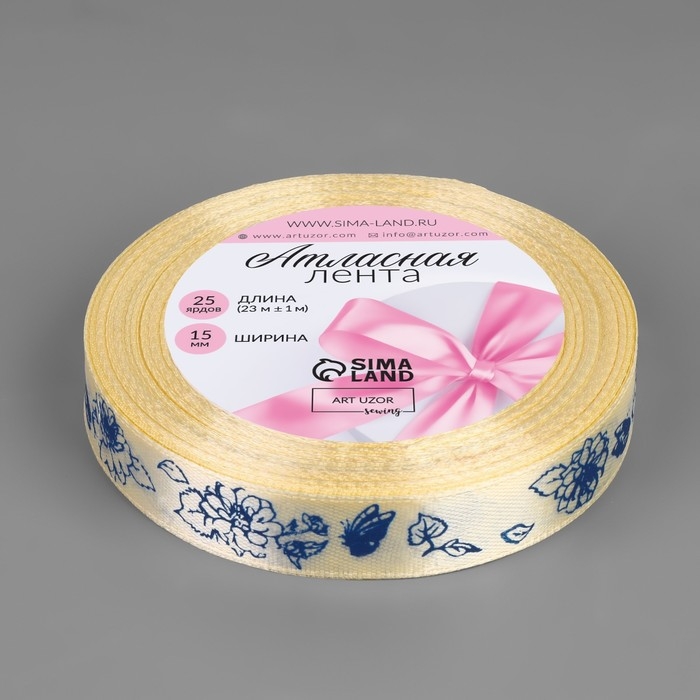Лента атласная «Пионы», 15 мм × 23 ± 1 м, цвет сливочный №002