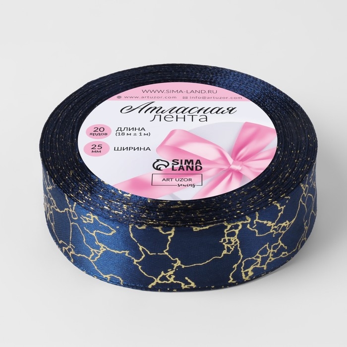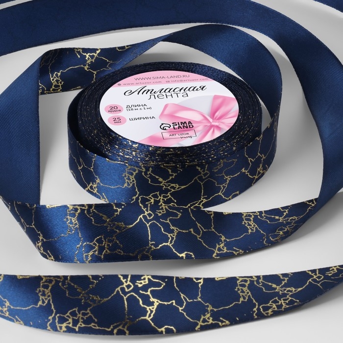 Лента атласная с тиснением «Мрамор», 25 мм × 18 ± 1 м, цвет синий/золотой №120