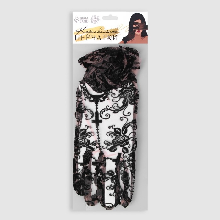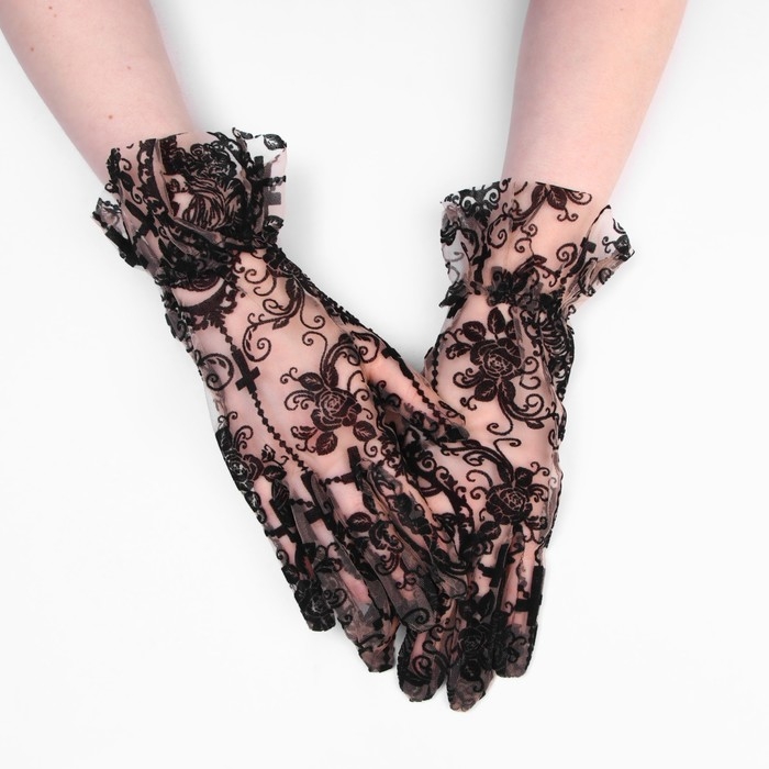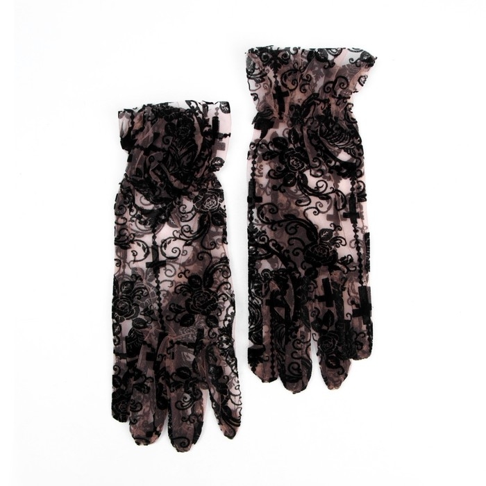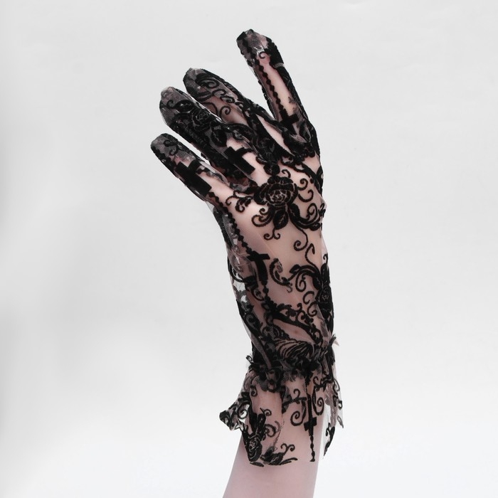 Перчатки женские ажурные, цвет чёрный, короткие