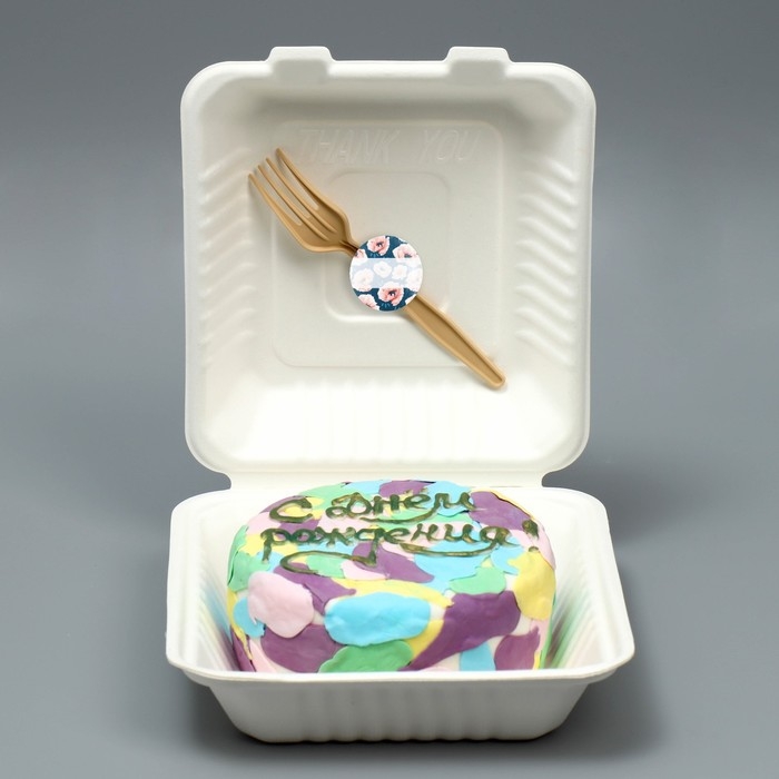 Коробка для бенто-торта с вилкой, кондитерская подарочная упаковка, «Цветочная», 21 х 20 х 7,5 см
