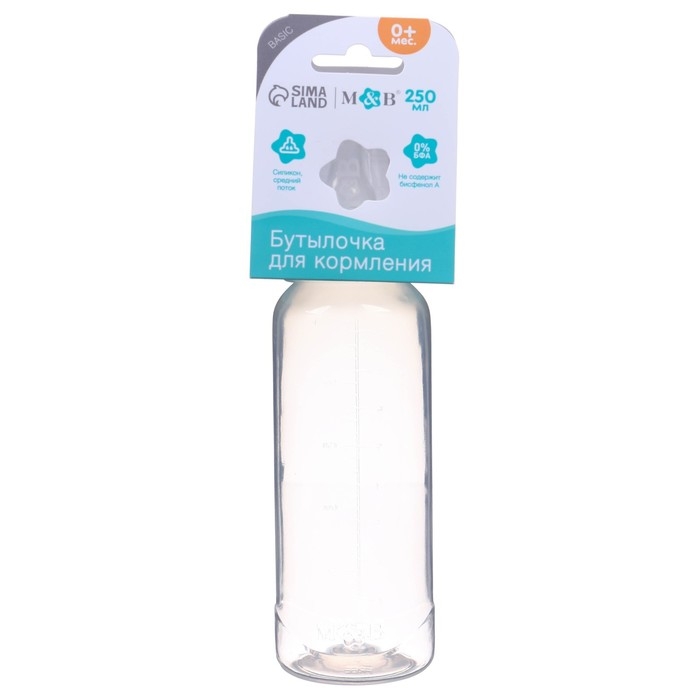 Бутылочка для кормления, классическое горло, 250 мл., от 3 мес., цилиндр, цвет белый