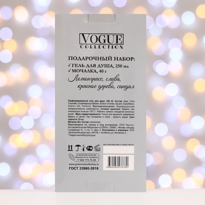 В мужской подарочный набор входят парфюмированный гель для душа и мочалка.