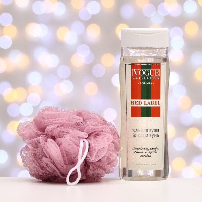 Подарочный набор косметики мужской Red Label: гель для душа 250 мл + мочалка микс