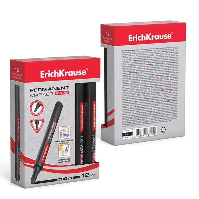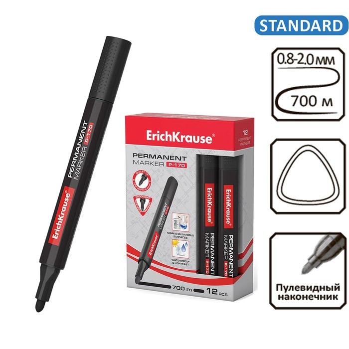 Маркер перманентный ErichKrause P-170, 2.0 мм, чернила на спиртовой основе, чёрный