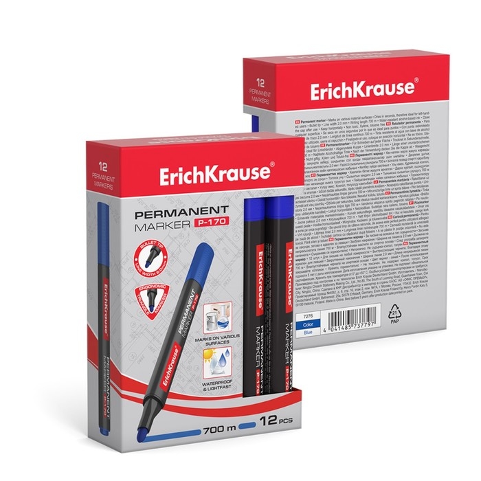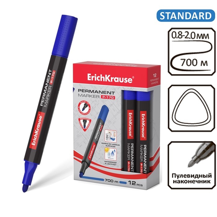 Маркер перманентный ErichKrause P-170, 2.0 мм, чернила на спиртовой основе, синий