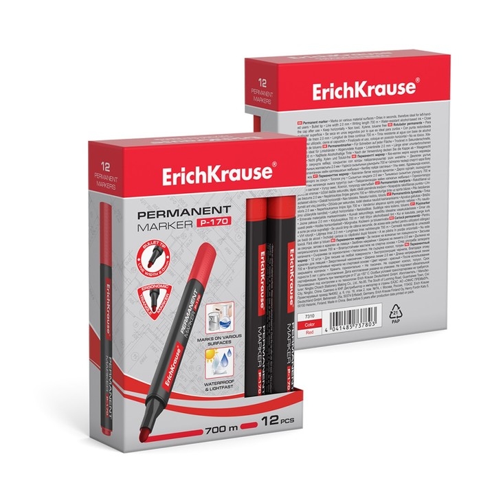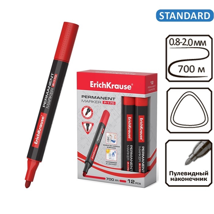 Маркер перманентный ErichKrause P-170, 2.0 мм, чернила на спиртовой основе, красный