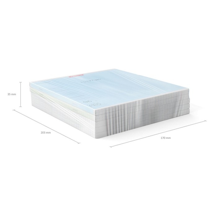 Тетрадь общая ученическая формата А5+ (170 x 203 мм). Двойная обложка: внешняя выполнена из высококачественного износостойкого прозрачного пластика с фактурой "апельсиновая корка", внутренняя — из качественной мелованной бумаги. В блоке 96 листов в клетку. Бумага офсетная плотностью 60 г/м2. Цвет линовки — синий. Скругленные уголки обложки и блока. Тип скрепления — скоба. Тетради разных дизайнов упакованы в термоусадочную пленку по 5 штук.