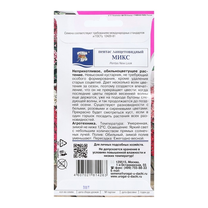 Семена цветов Пентас ланцетовидный "Микс F1", 0,003 г. в амп.