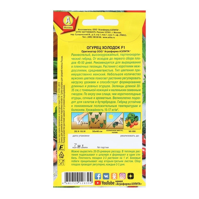 Семена Огурец "Китайский Холодок", F1, 7 шт