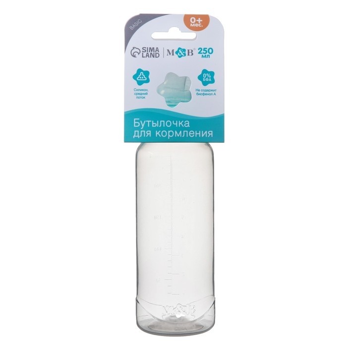 Бутылочка для кормления, классическое горло, 250 мл., от 3 мес., цилиндр, цвет бирюзовый
