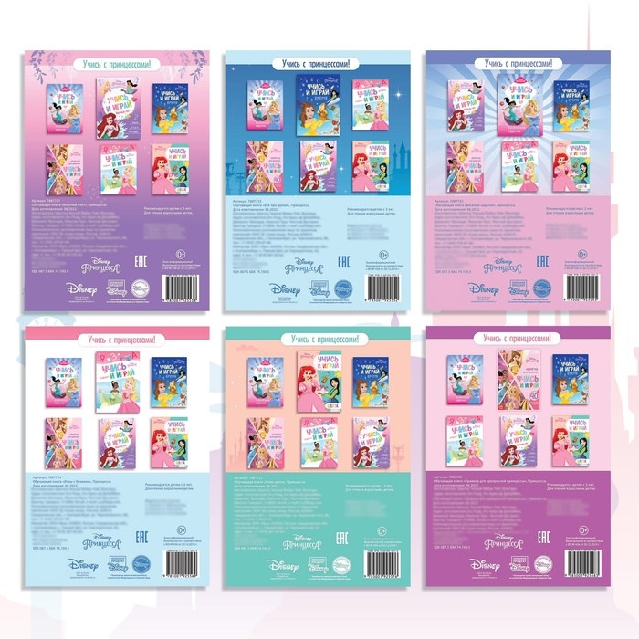 Набор обучающих книг "Учимся с Принцессами", 6 книг по 20 стр., А5, Принцессы