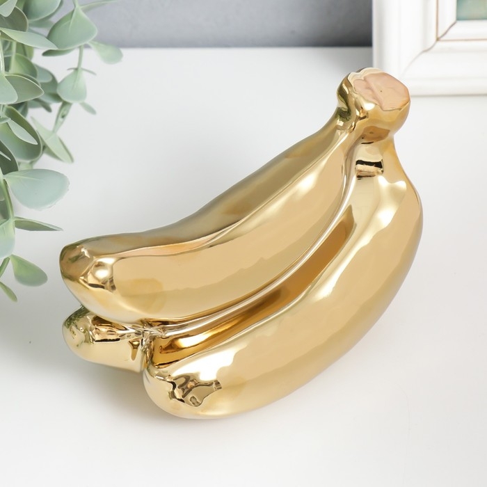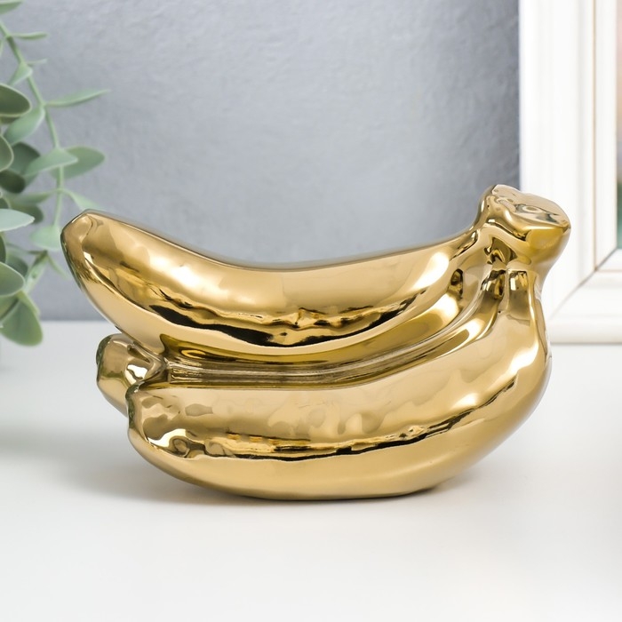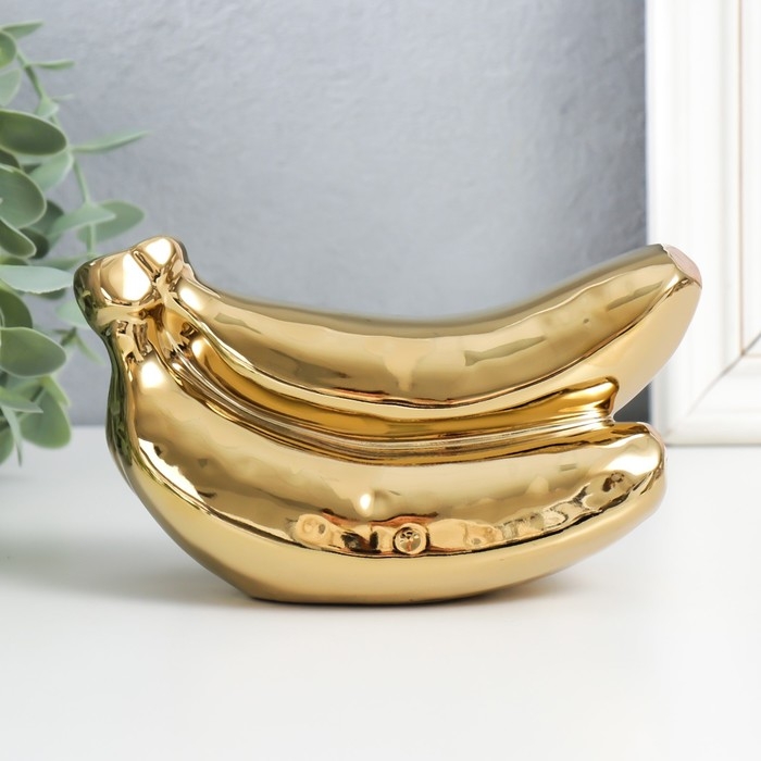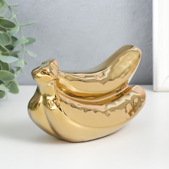 Сувенир керамика "Связка бананов" золото 9х17х7,5 см