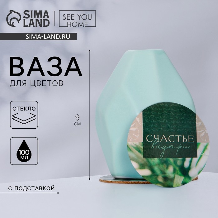 Ваза для цветов и подставка «Счастье внутри», 9 х 7 х 7 см, 350 мл.