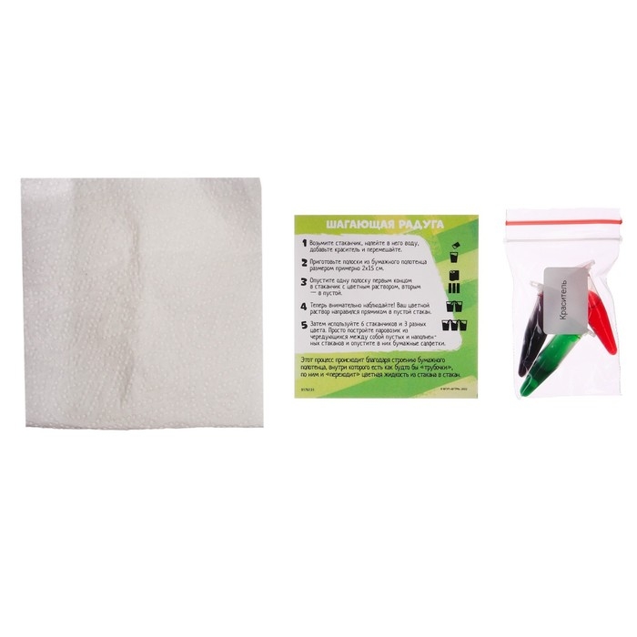 Вода — удивительная жидкость, и эксперимент «Шагающая вода» это докажет! Ребёнок узнает некоторые её свойства, увидит, как работает капиллярный эффект, и получит новые цвета путём смешивания основных.